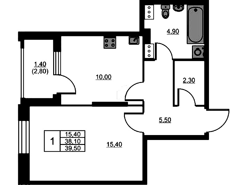 • Площадь39,5 м2