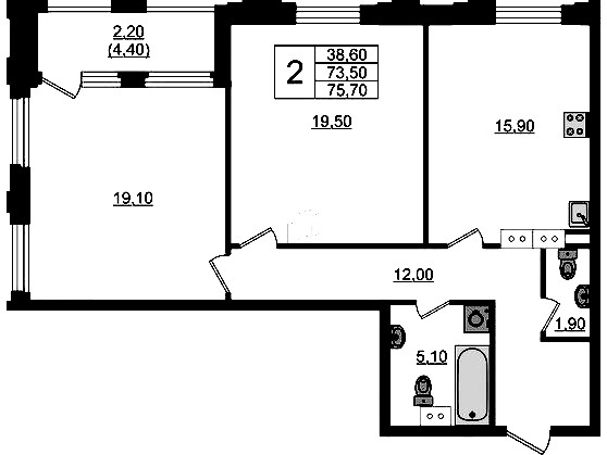 - Площадь75,7 м2