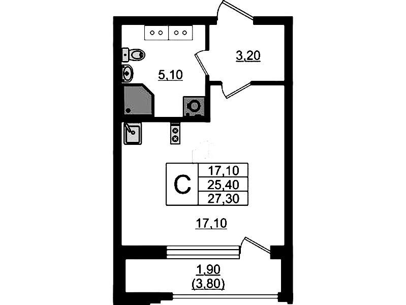 • Площадь27,3 м2