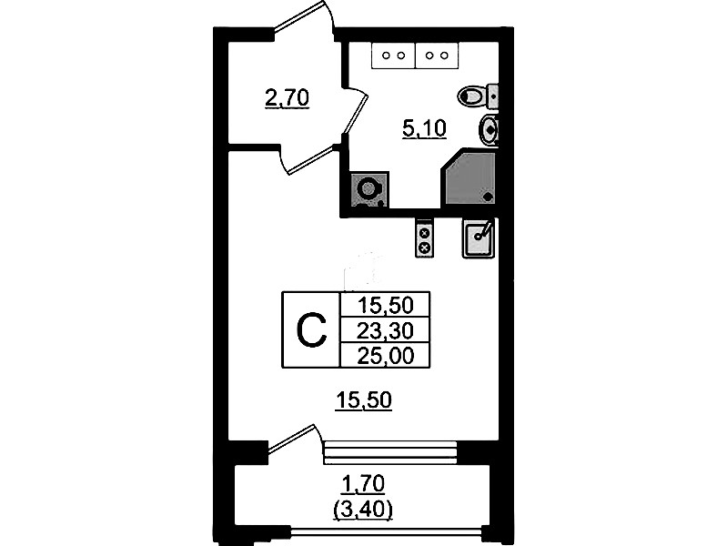 • Количество комнатСтудия