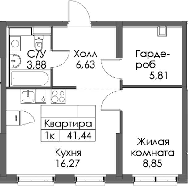 • Площадь41,44 м2
