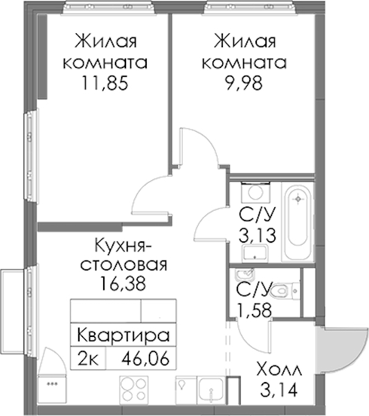 - Площадь46,06 м2