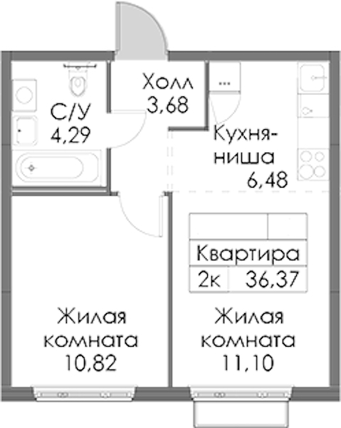 - Площадь36,37 м2