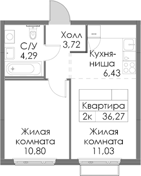 - Площадь36,27 м2