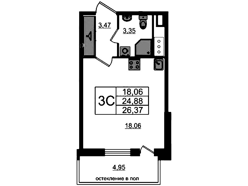 - Площадь24,88 м2