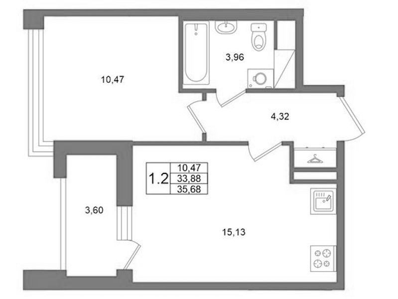 • Площадь33,88 м2