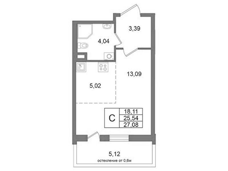 • Площадь25,54 м2
