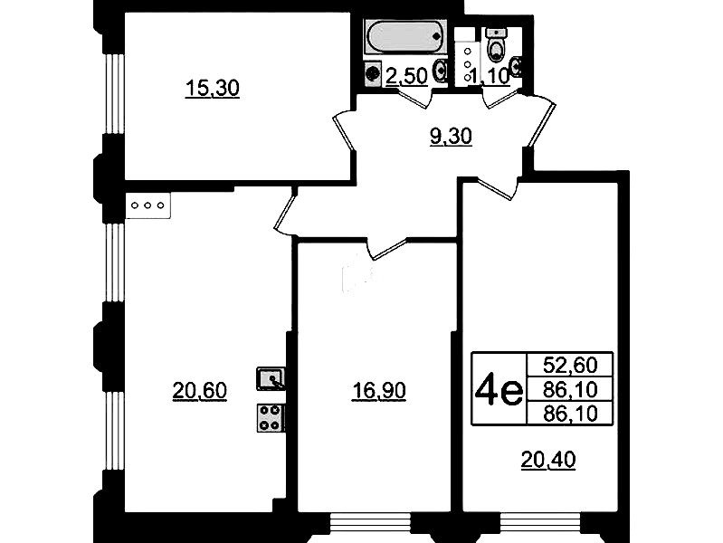 Трёхкомнатная квартира на 3-ем этаже 86,1 кв.м