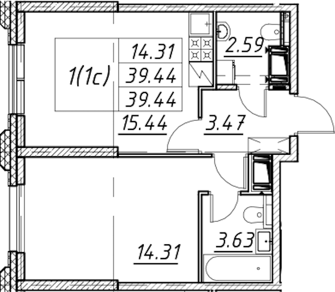 • Площадь39,44 м2