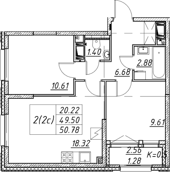 - Площадь50,78 м2