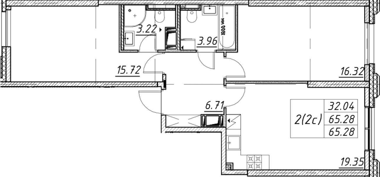 - Площадь65,28 м2