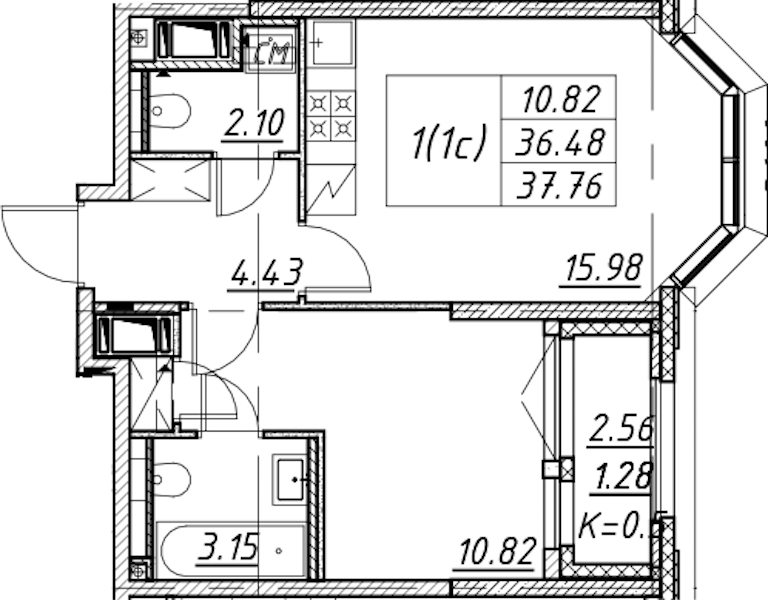 • Площадь37,76 м2