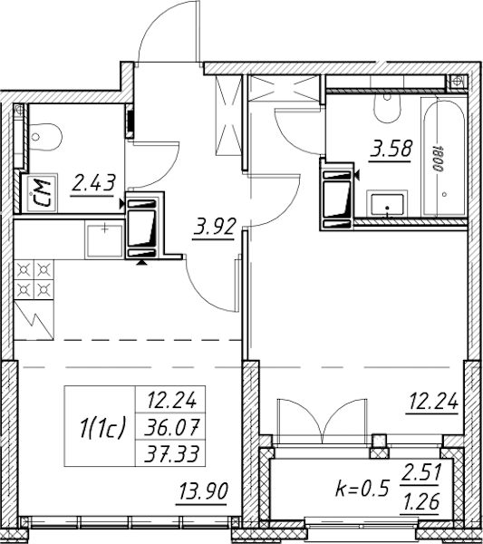 - Площадь37,33 м2