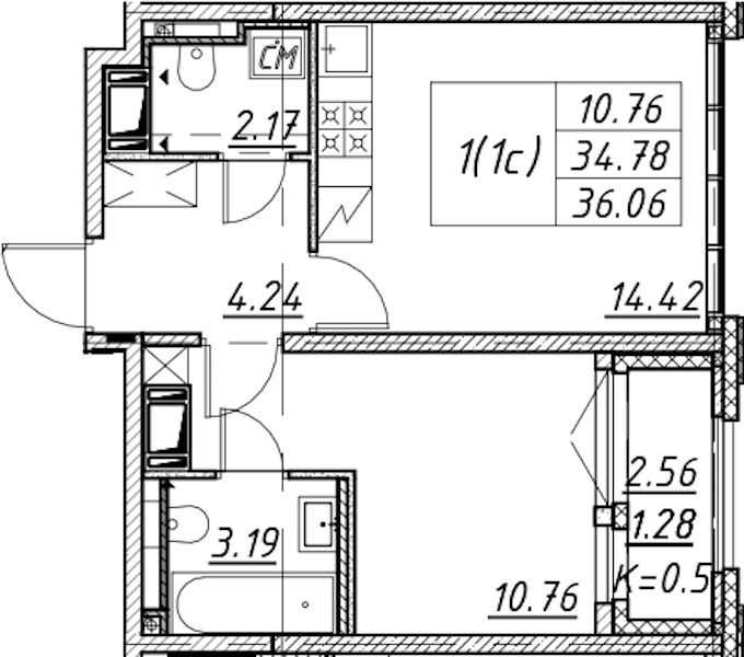 • Площадь36,06 м2