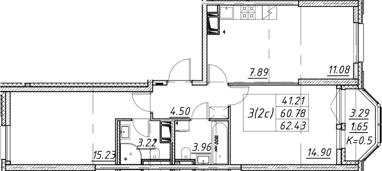 - Площадь62,43 м2