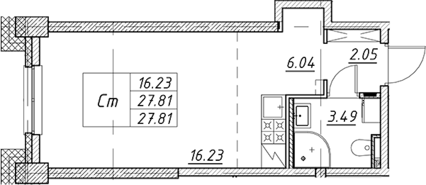 • Площадь27,81 м2