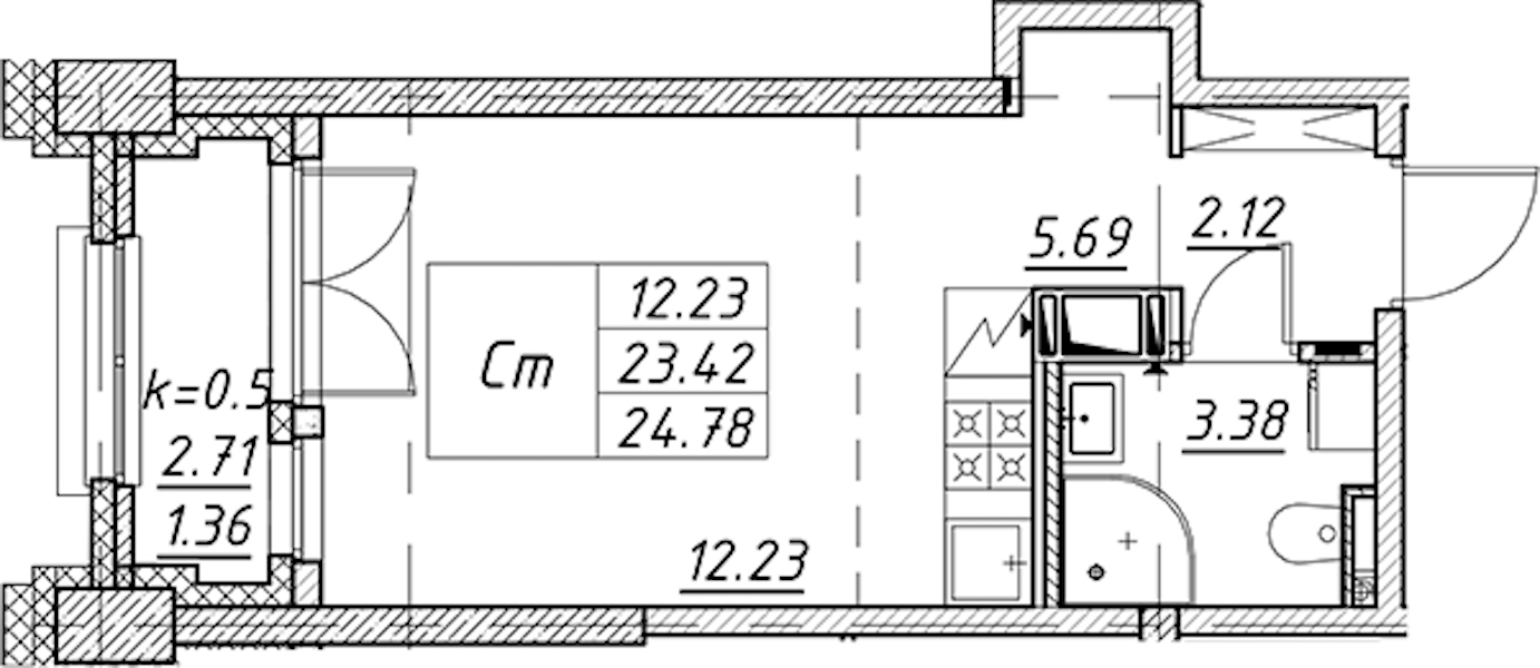 - Площадь24,78 м2