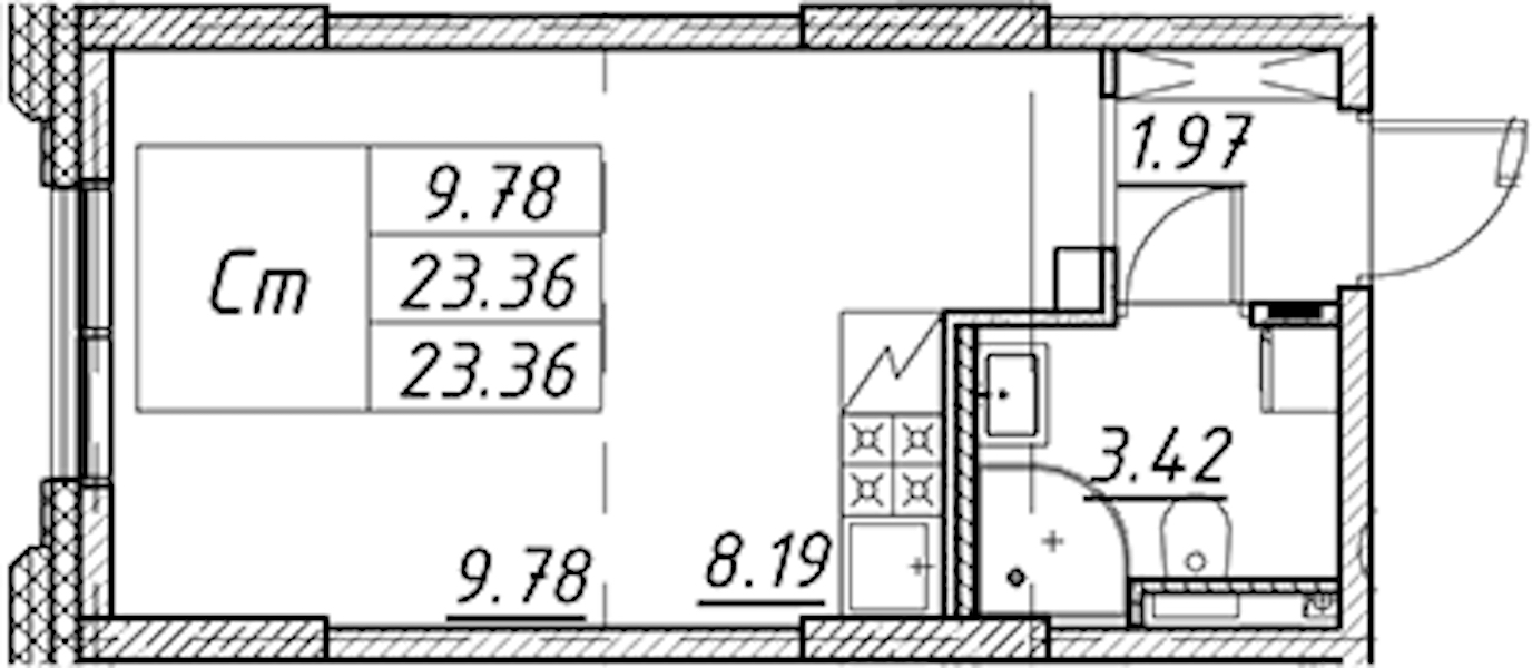 Квартира-студия на 2-ом этаже 23,36 кв.м
