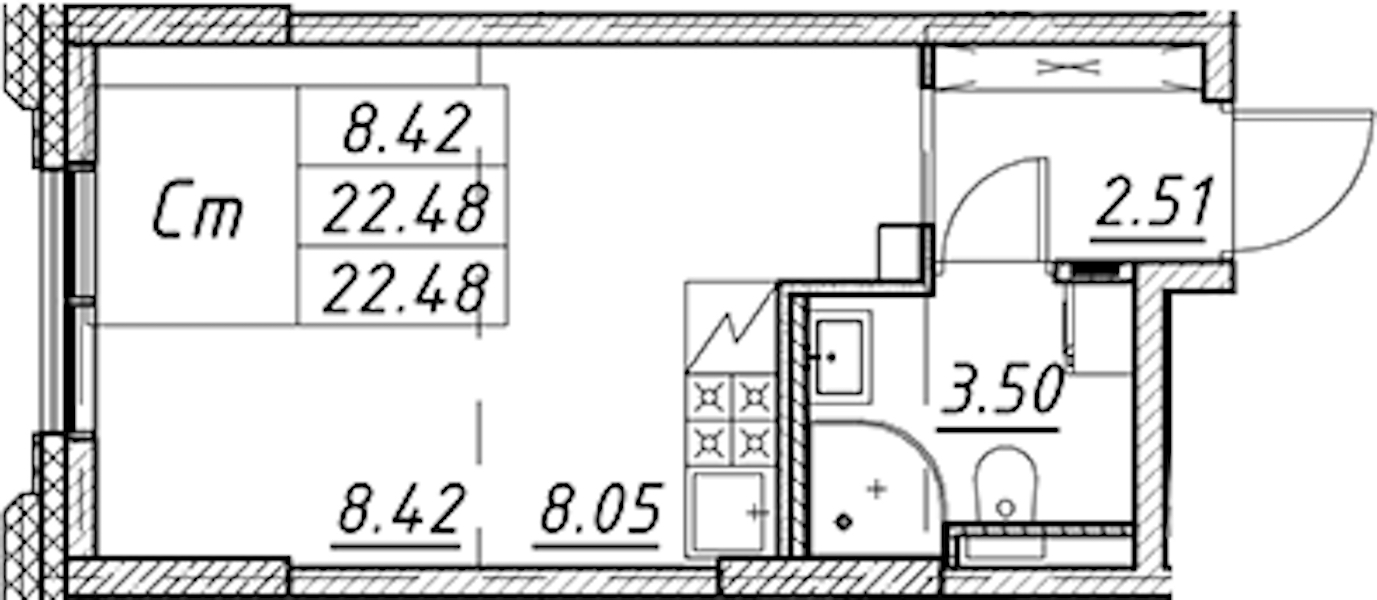 - Площадь22,48 м2