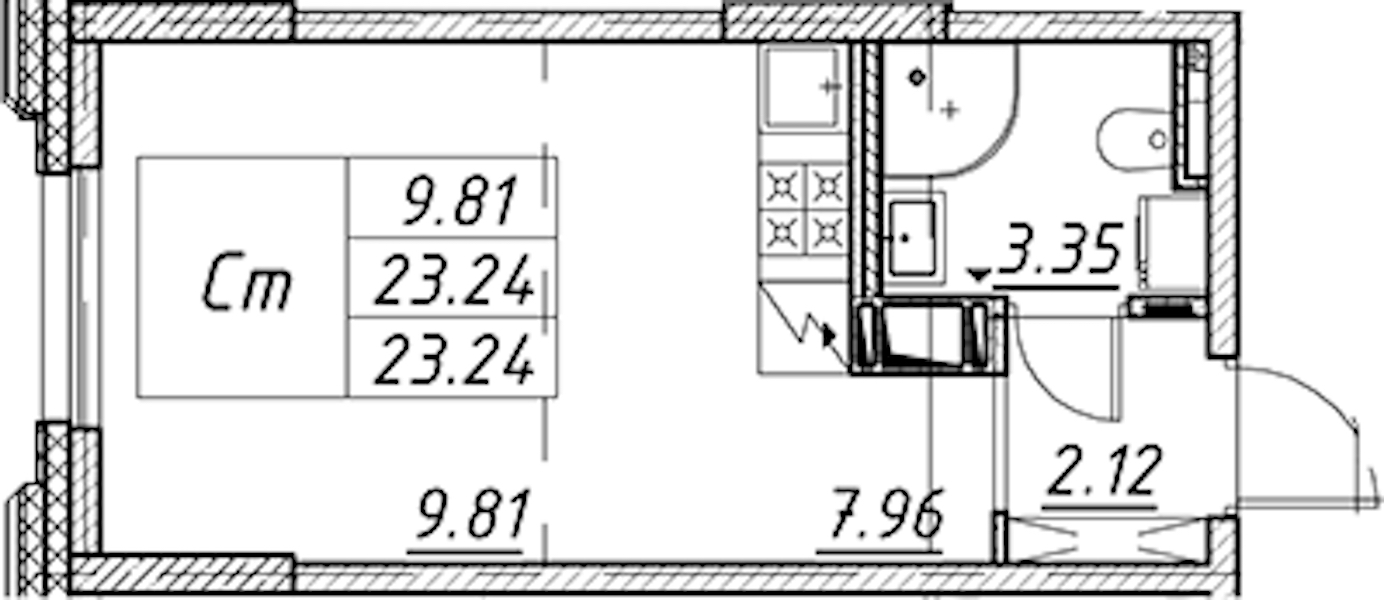 Квартира-студия на 3-ем этаже 23,24 кв.м