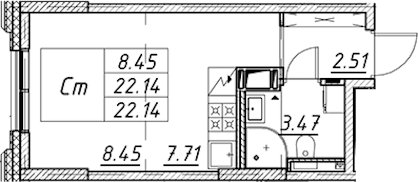 • Площадь22,14 м2