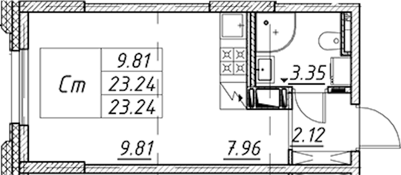 Квартира-студия на 4-ом этаже 23,24 кв.м