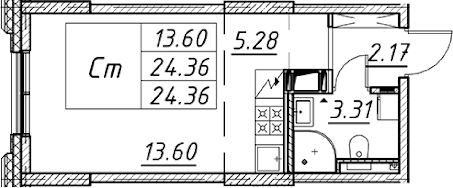 • Площадь24,36 м2