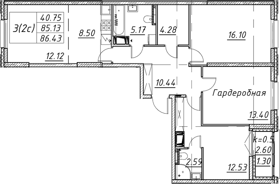 - Площадь86,43 м2