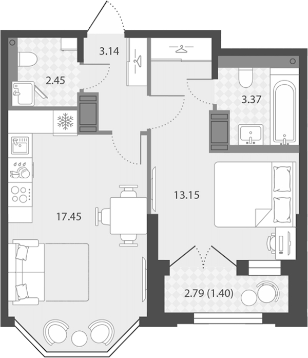 - Площадь40,96 м2