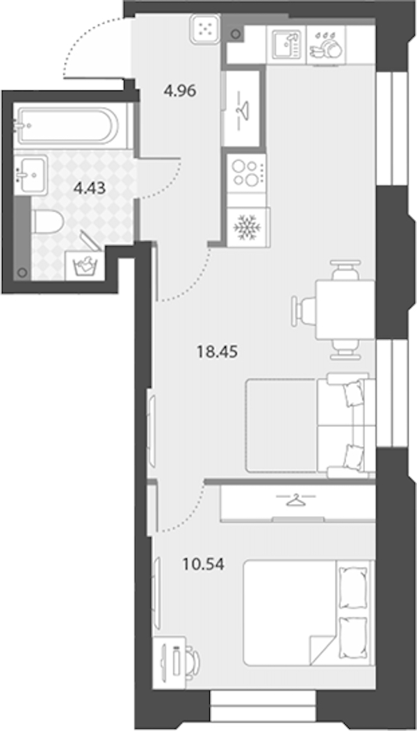- Площадь кухни18,45 м2