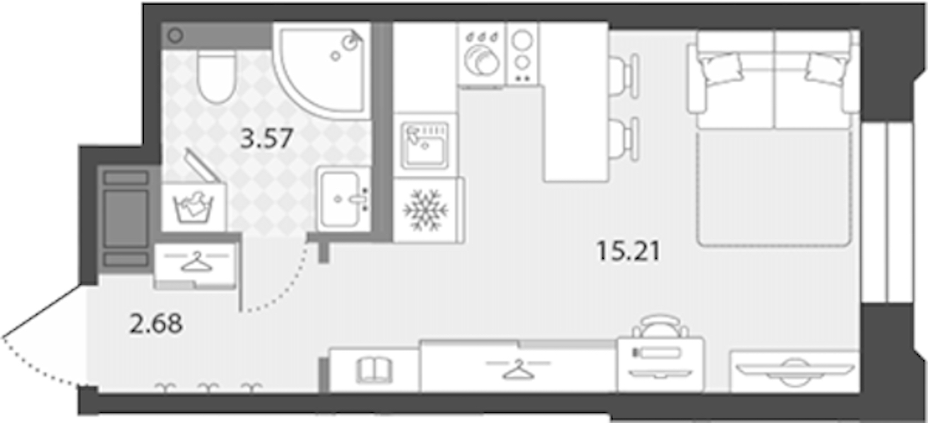 - Площадь21,46 м2