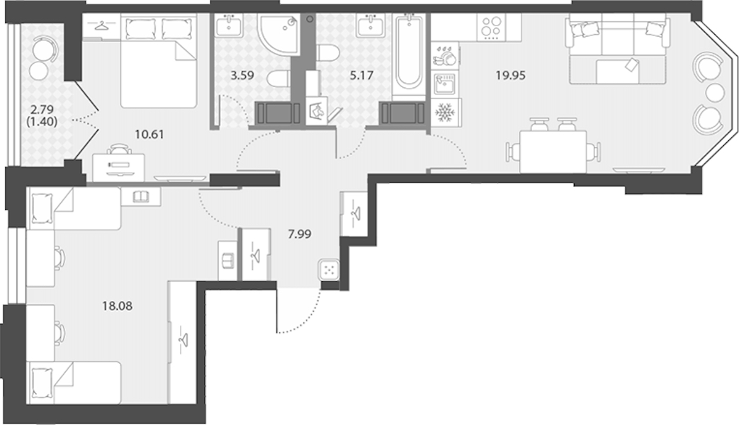 - Площадь66,79 м2