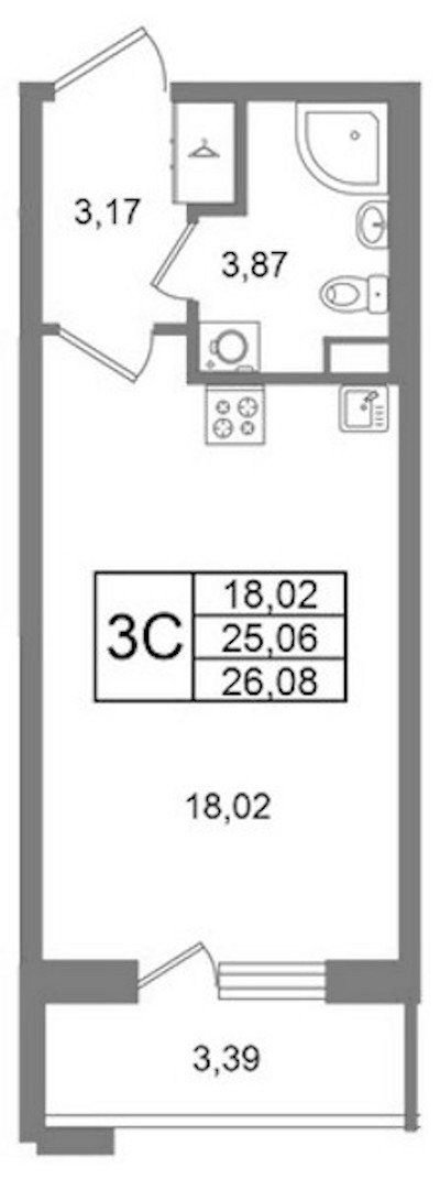 - Площадь25,06 м2