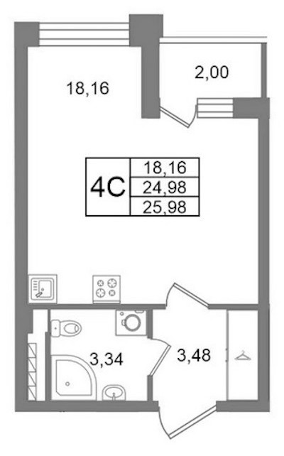 Квартира-студия на 3-ем этаже 24,98 кв.м