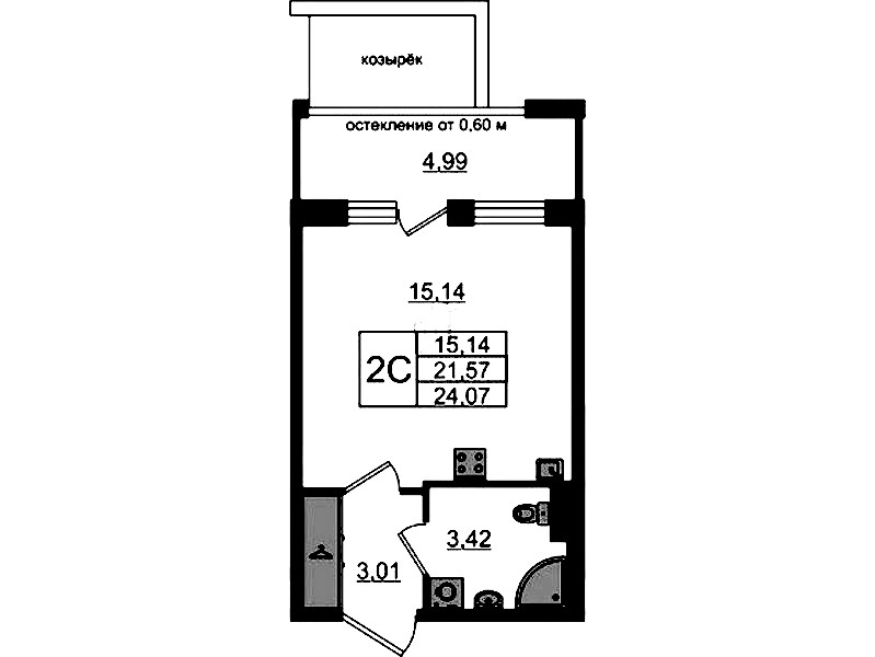 Квартира-студия на 1-ом этаже 21,57 кв.м