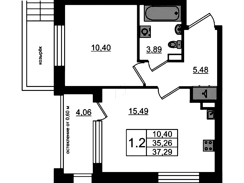 Однокомнатная квартира на 1-ом этаже 35,26 кв.м
