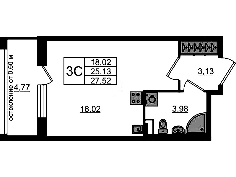 • Площадь25,13 м2