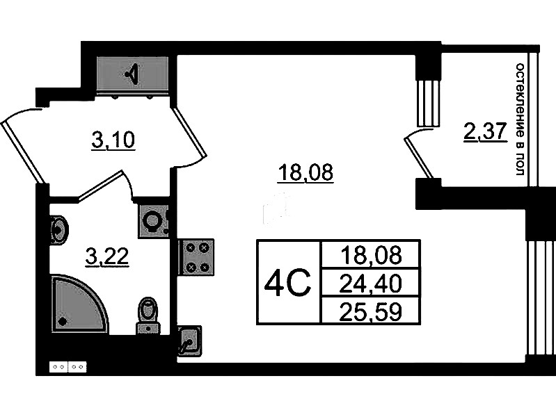 Квартира-студия на 3-ем этаже 24,4 кв.м