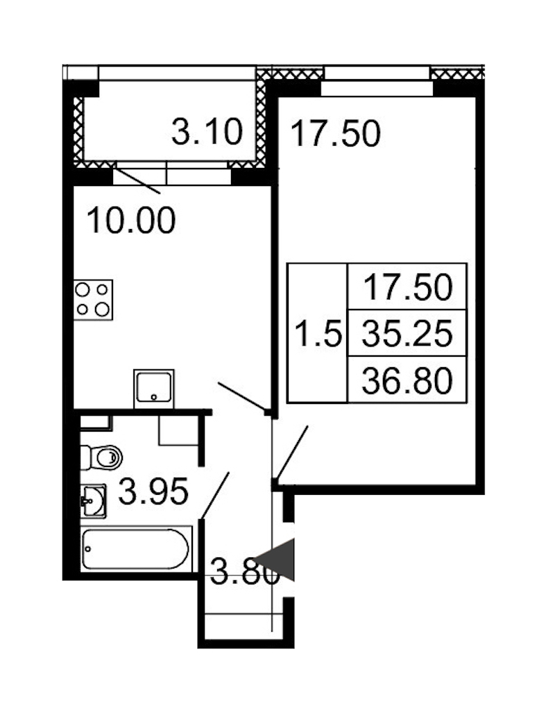 - Площадь35,2 м2