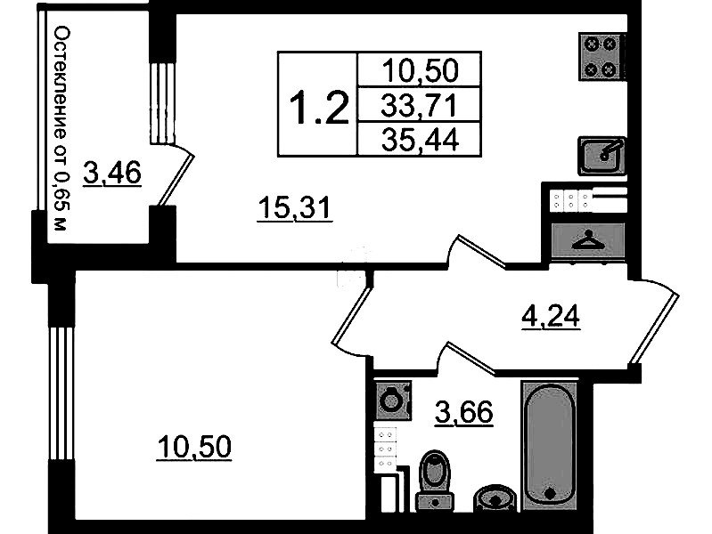 - Площадь33,1 м2