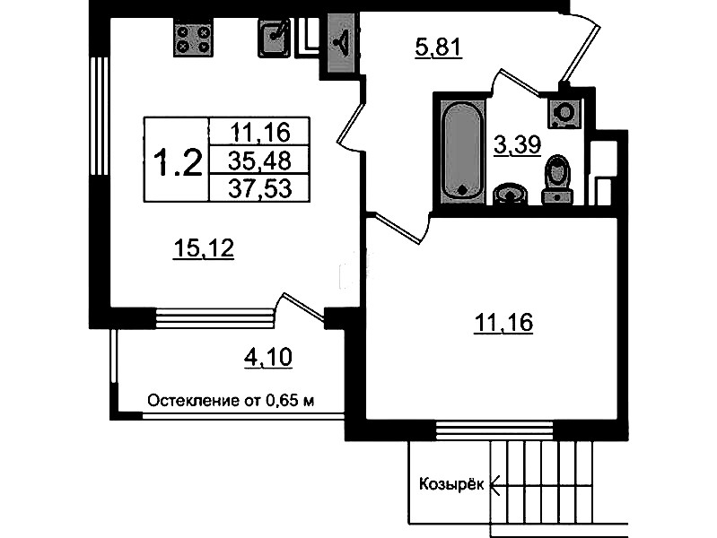 Однокомнатная квартира на 1-ом этаже 35 кв.м