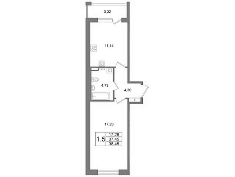 - Площадь37,45 м2