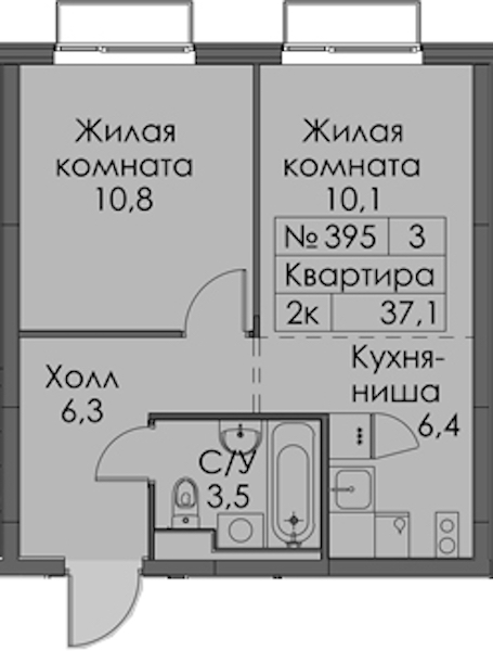 - Площадь37,1 м2