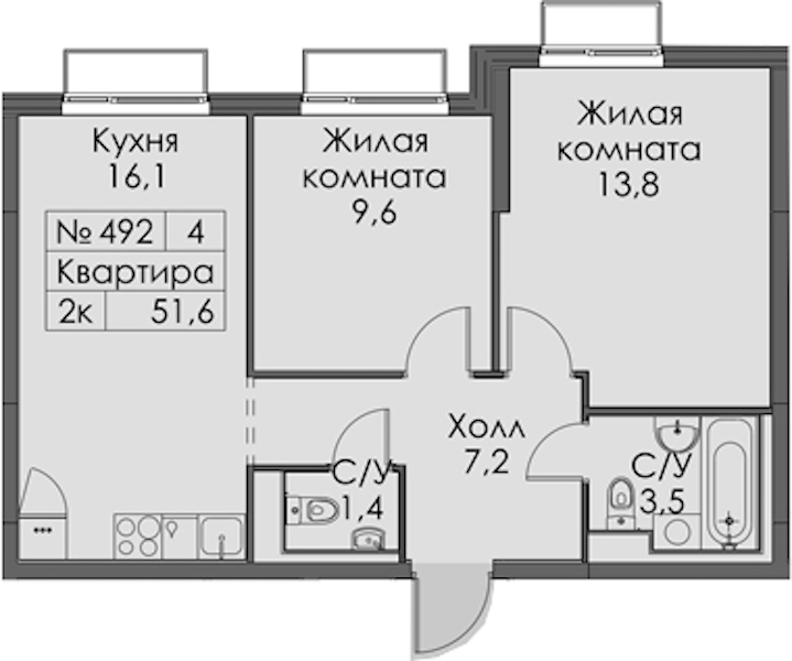 • Площадь51,6 м2
