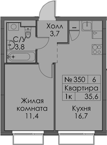 - Площадь35,6 м2