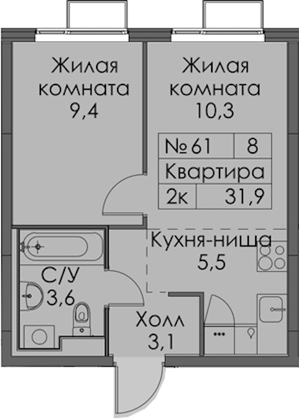 • Площадь31,9 м2