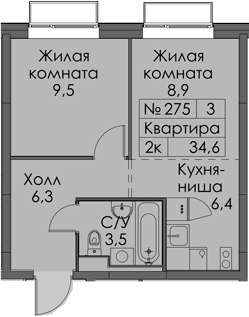 • Площадь34,6 м2