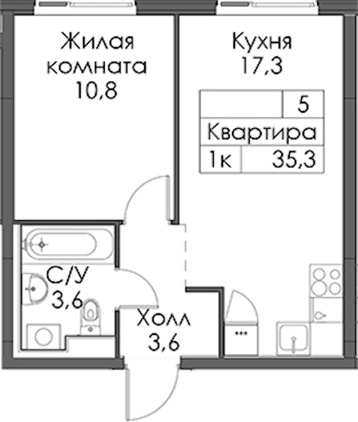 - Площадь35,3 м2