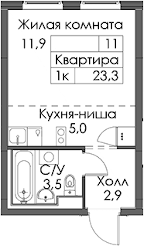 - Площадь23,3 м2