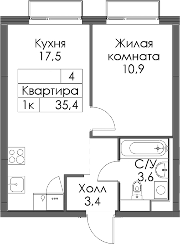 • Площадь35,4 м2